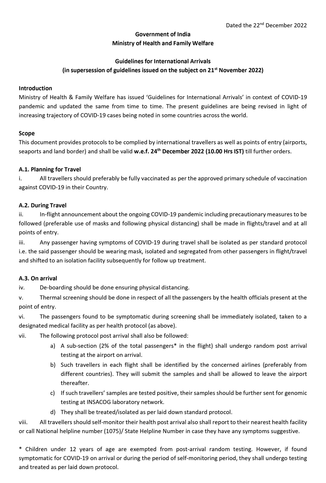 Review of COVID-19 guidelines for International flight operations / arrivals -reg